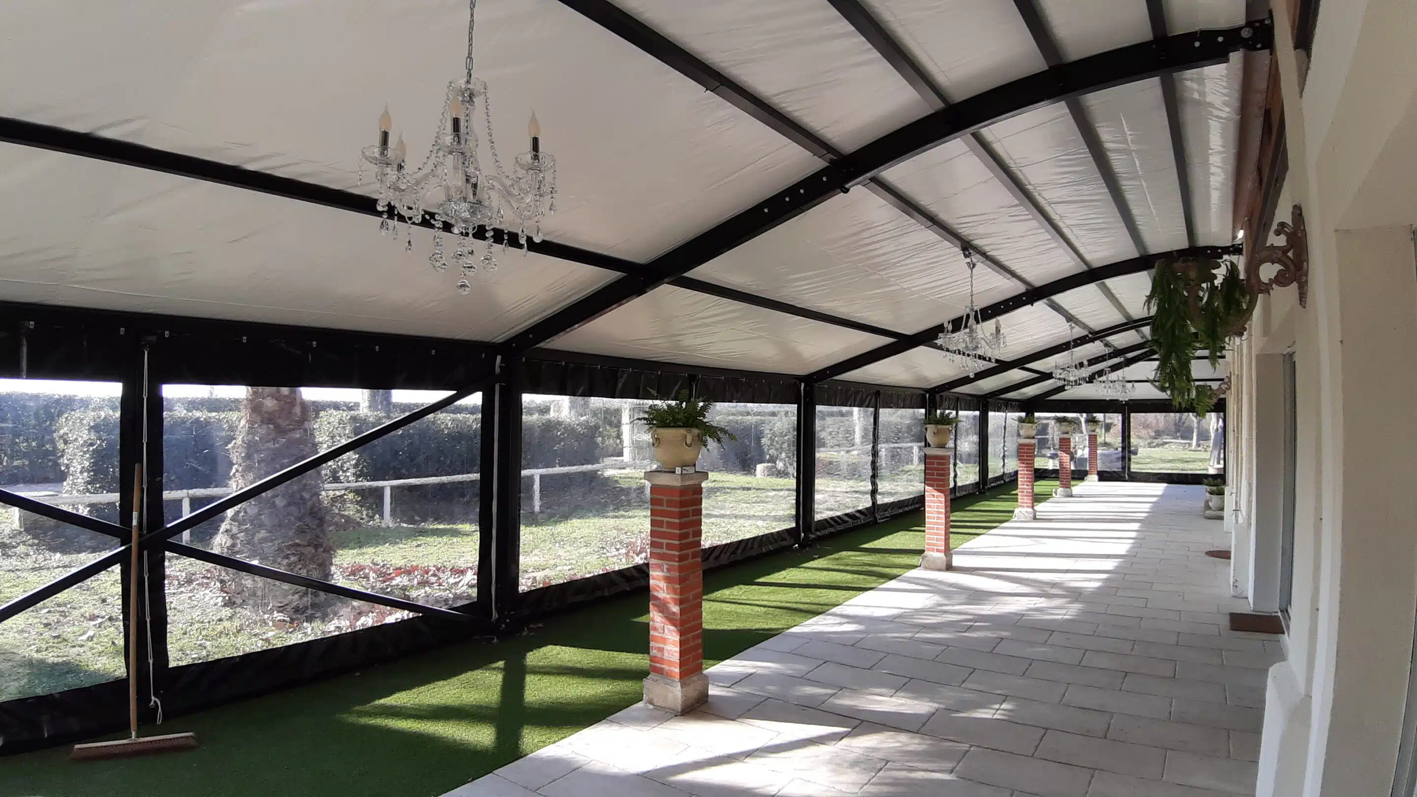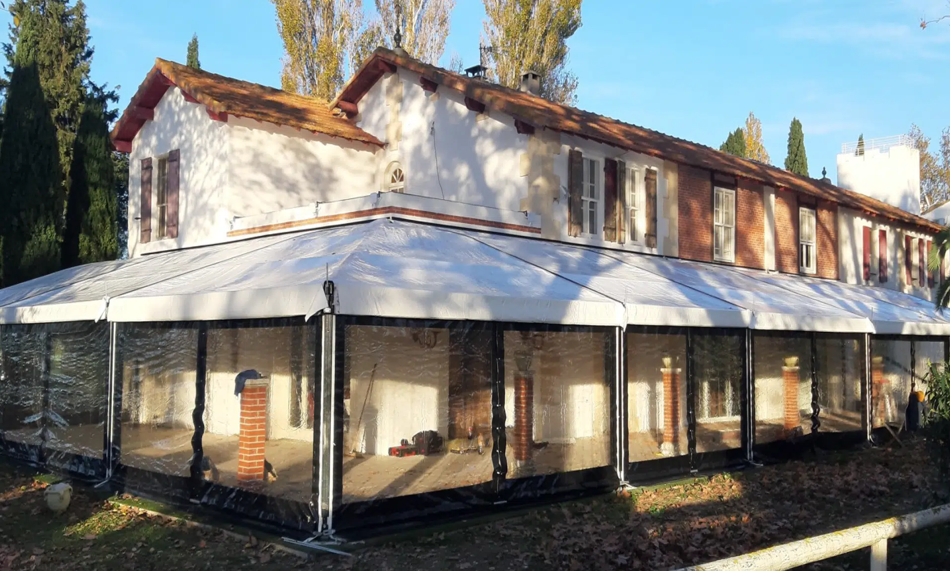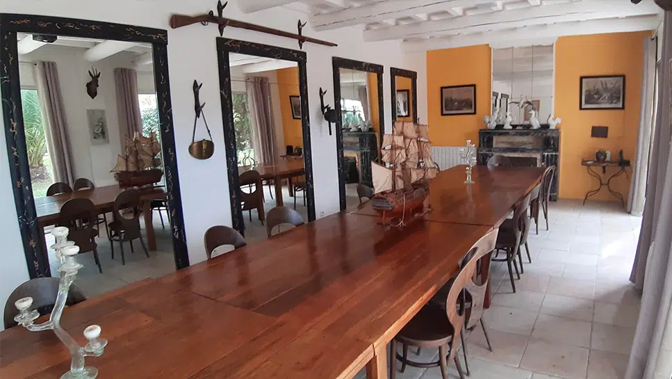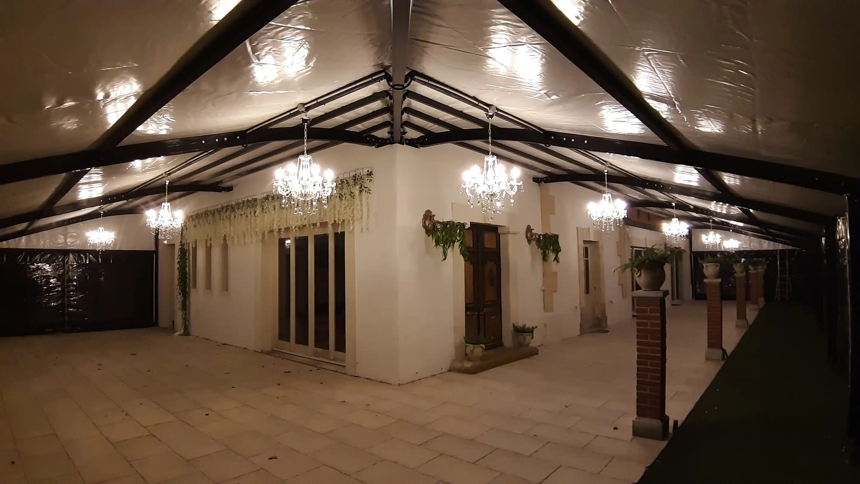 We propose to organise your wedding at the Marquis’ pavilion. This 500 m2 building has on the ground floor a lounge, a meeting room, a kitchen and a large veranda of 180 m2 that can accommodate up to 150 people. In addition, a 20 m2 pantry with a sink and a professional kitchen-type work surface will enable your caterer to carry out his work in the best possible conditions. On the first floor, 4 bedrooms with bathrooms will allow you to welcome 4 couples of guests. In the 3 other gîtes of the building you can accommodate 18 more people, for a total of 26 people.